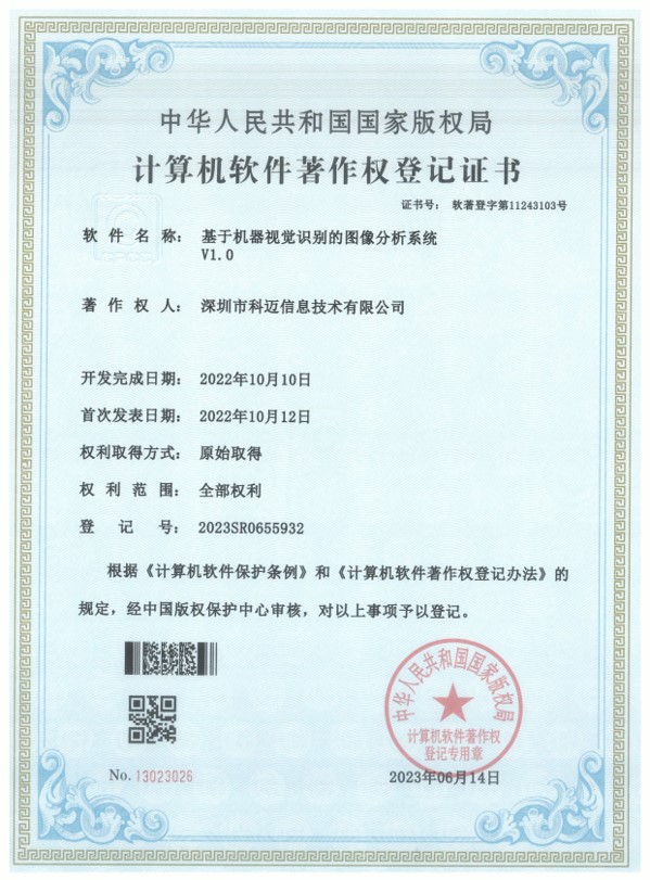 | 3 | 基于机器视觉识别的图像分析系统 | C&M(科迈)V1.0 | 通道 | M×N |