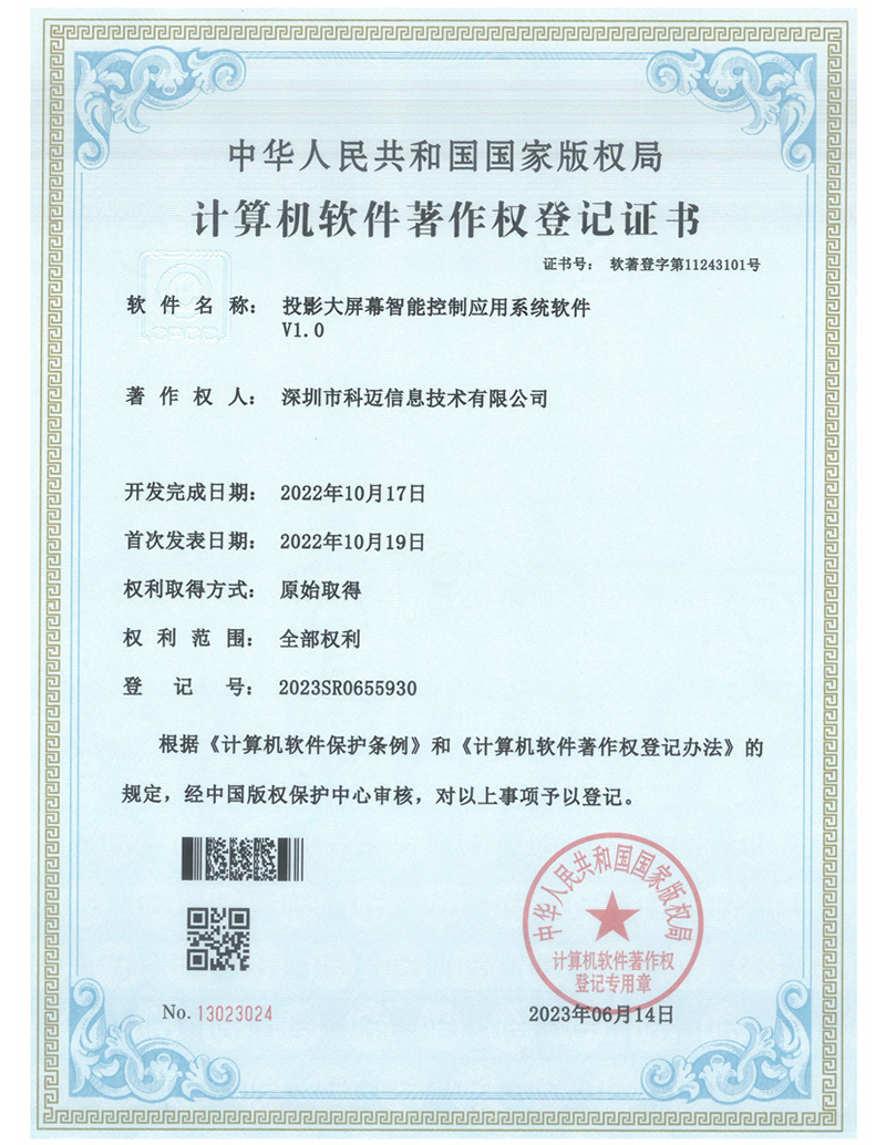 | 3 | 投影大屏幕智能控制应用系统软件 | C&M(科迈)V1.0 | 通道 | M×N |
