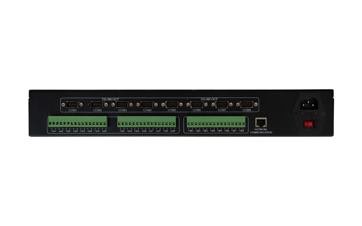 | 输入输出接口 | 1路10/100Mbps以太网口;8 路串行通信接口;8路独立可编程的红外发射接口;8路I/O接口;8路弱电继电器接口;1个内嵌式红外遥控学习模块; |
