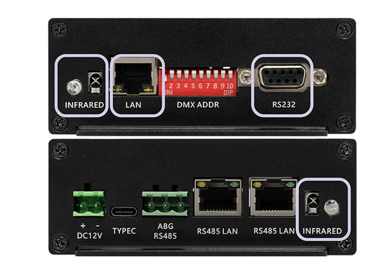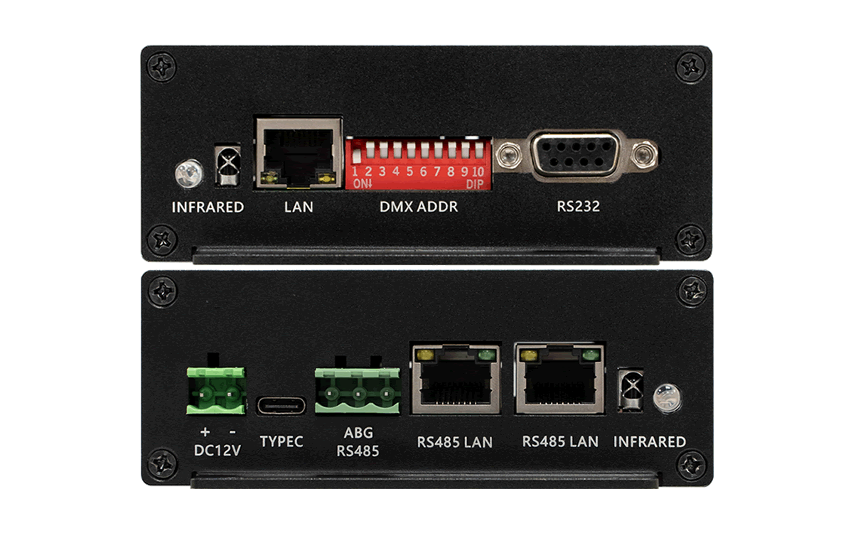 RHT系列多通道投影画面融合播放控制系统灯光协议控制器提供一个USB Type-C接口用于调试和串行通信。